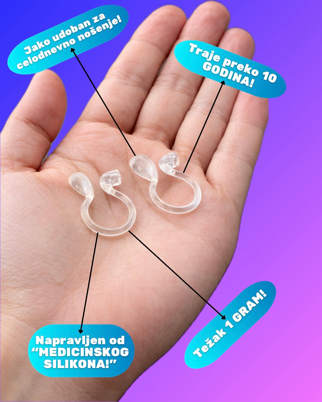 Napravljen od fleksibilnog Medicinskog Silikona koji se lako uklapa uz oblik uha, pružajući udobnost i diskretan izgled bez iritacija.